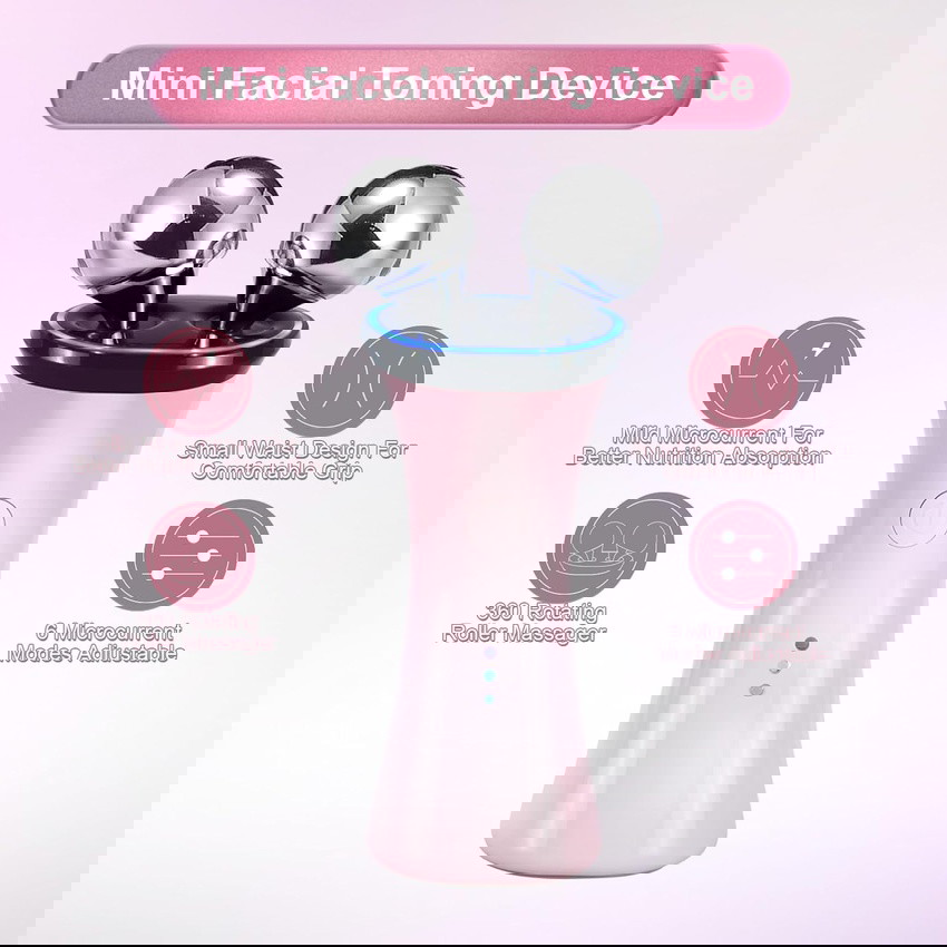 The Vynzo Microcurrent Face Lift & Massage Device is a handheld toning tool designed to help improve skin appearance, support facial contouring, and promote a refreshed, lifted look. Its dual-ball design gently massages the face while microcurrent technology supports better skin elasticity and product absorption for a smoother, more energized complexion.
